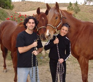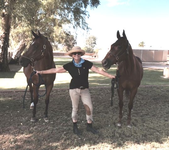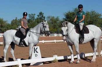 ![]() Carol Kessler and her horse Matt, who do Dressage. | ![]() Almost matched pairs! | |