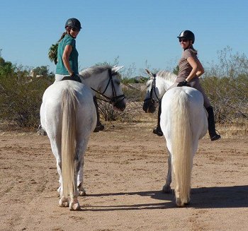 ![]() Mary and Nina riding in the dressage courts enjoying our first day of "fall weather". | |